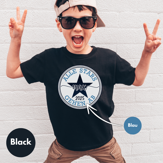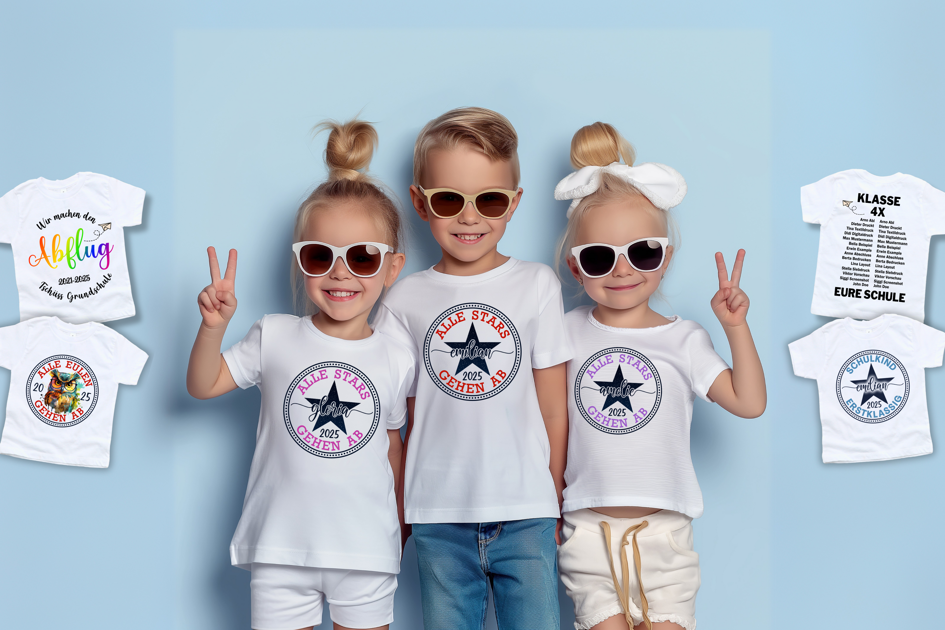 Schulkind Gruppenshirt | Schulabschluss Grundschule | Abschiedsgeschenk 4. Klasse Schüler | beidseitig bedruckt mit Namen und Schuljahr