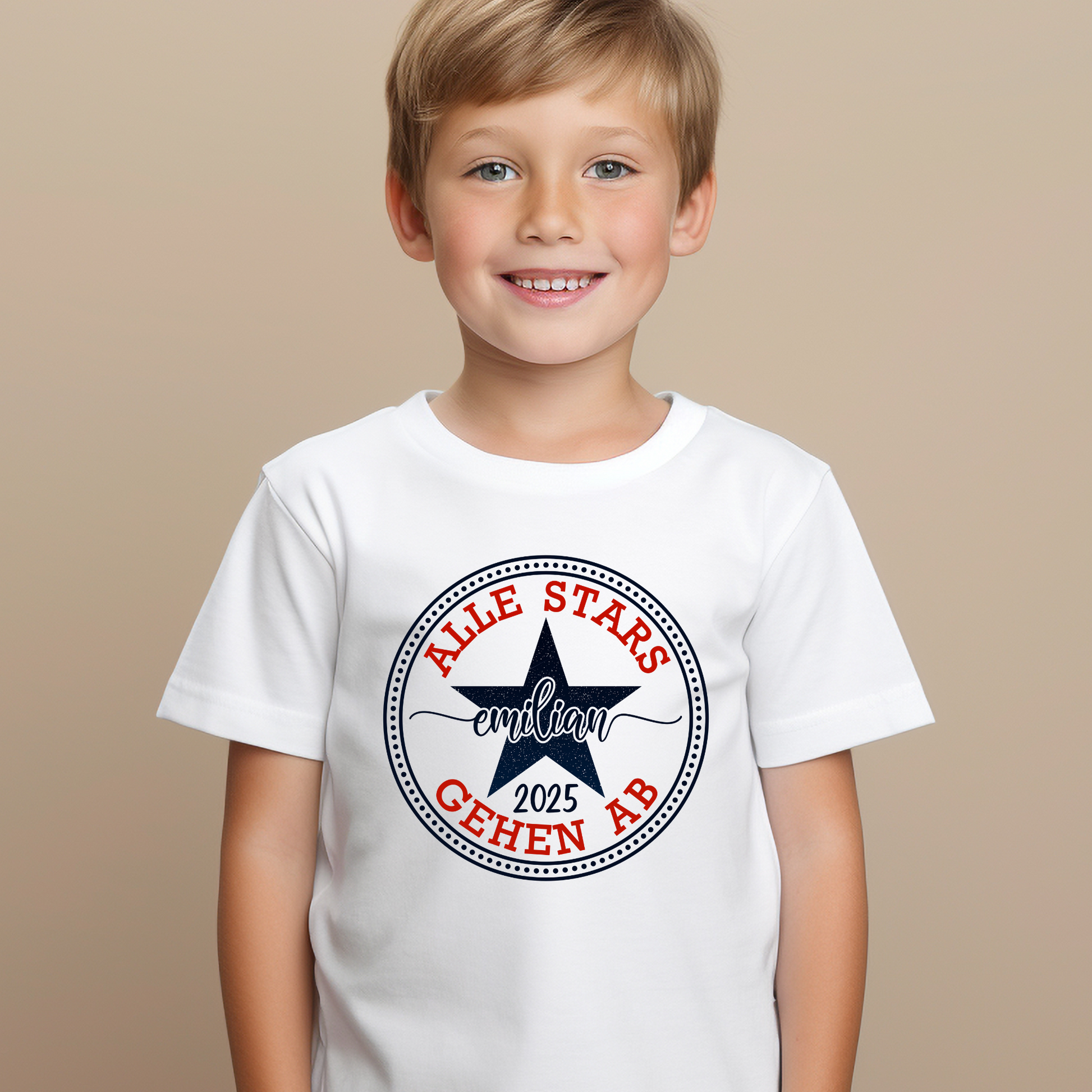 Schulkind Gruppenshirt Stars | Schulabschluss Grundschule | Abschiedsgeschenk 4. Klasse Schüler | Alle Stars gehen ab mit Name und Schuljahr - beidseitig bedruckt